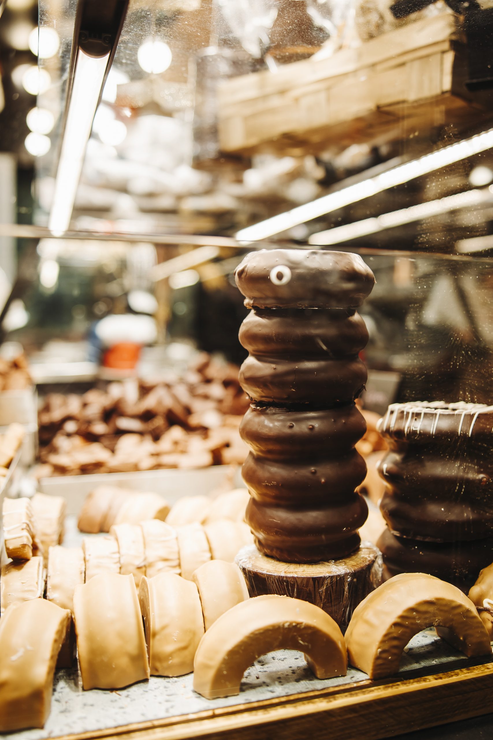Vom Lübecker Weihnachtsmarkt direkt zu dir nach Hause – unser frisch von der Walze und in Kuvertüre überzogener Baumkuchen.